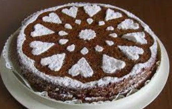 Dose: g. 600 di zucchero, g. 250 di farina di mandorle, n. 18 rossi d'uovo, g. 150 di burro fuso, n. 18 uova intere, g. 100 di cacao, g. 250 di fecola, vaniglia. g. 250 di farina,